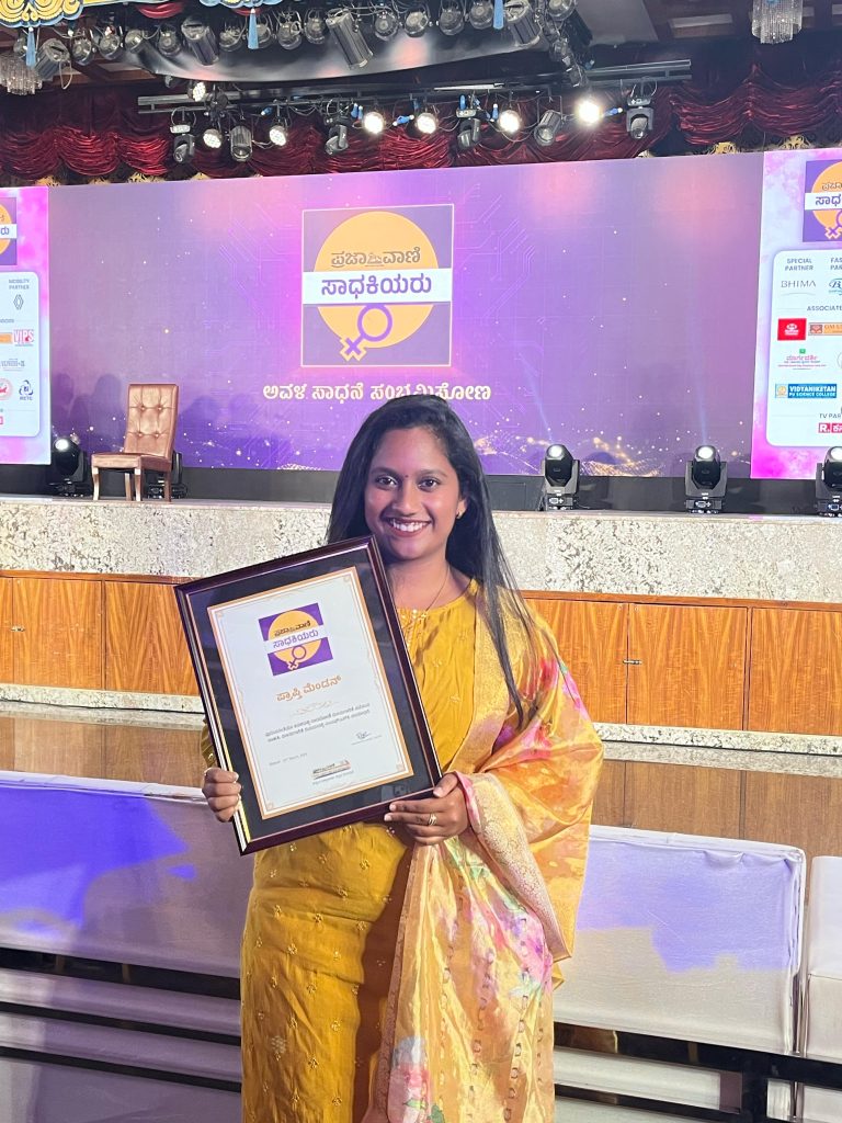 Ms. Prapti Mendon honored by Prajavani Women’s Achievers Award